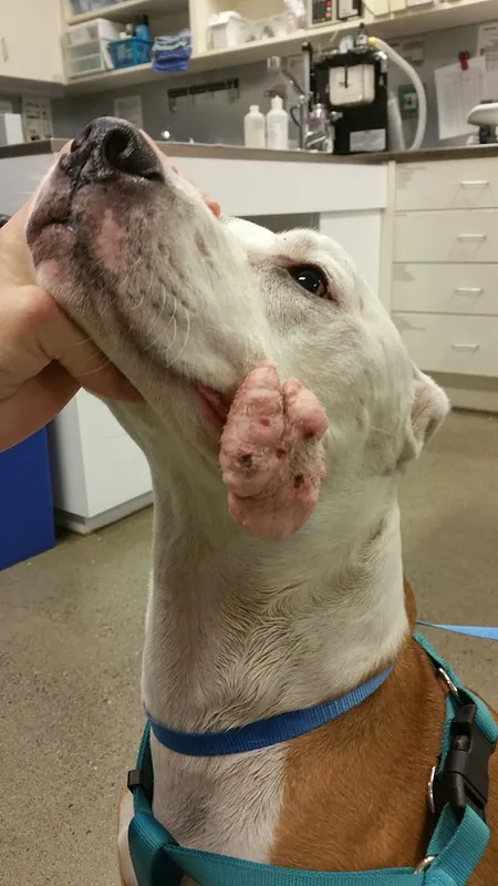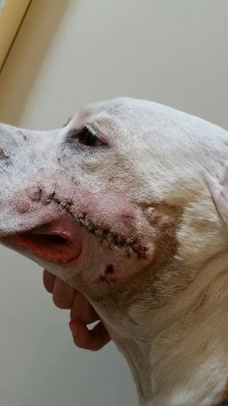This mass on the face should have been removed sooner for optimum outcome and cosmetic appearance. However better late than never. We would have also liked to have biopsied the mass however due to constraints the removal was the owner's main concern.