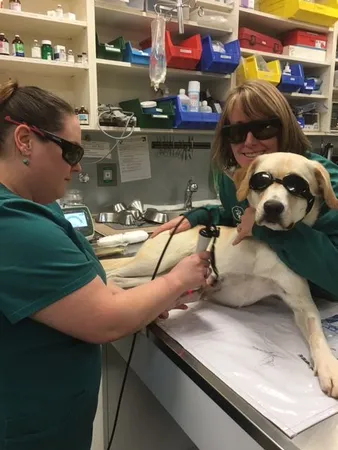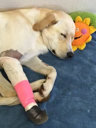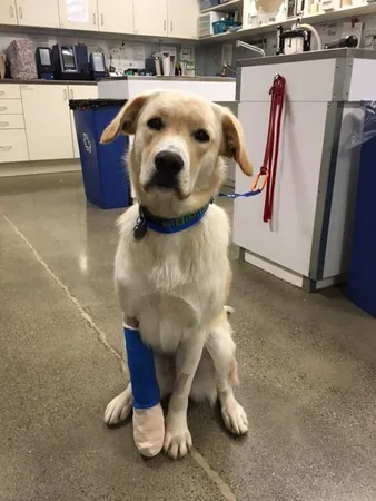 On 11/15/16 Brooklynn had corrective ostoectomy surgery due to a premature ulnar plate closure. At some point while she was a puppy she had a trauma to her leg that caused one of the 3 growth plates in her lower leg to close while the other 2 were still growing. This caused her leg to be deformed and cause her pain making her limp. Fortunately, at age 13 months she was able to have corrective orthopedic surgery by Dr. Fetherston and is currently undergoing 8 weeks of laser therapy and daily bandage/splint changes. She is also doing range of motion exercises and walking in the underwater treadmill.